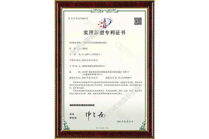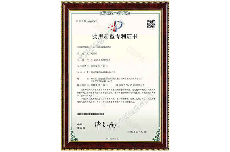 改进的蒸发冷结构实用新型专利证书